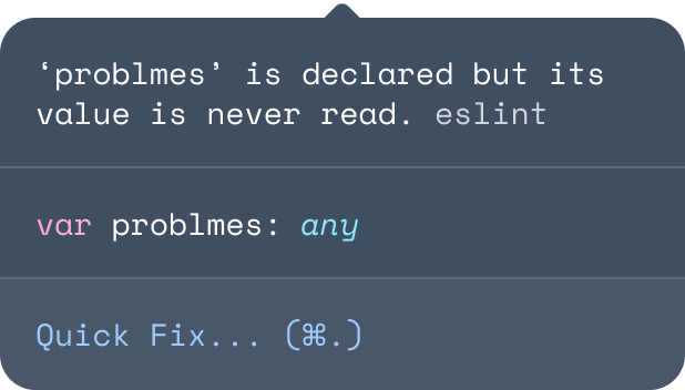 Learn more about finding issues with ESLintMany problems ESLint finds can be automatically fixed. ESLint fixes are syntax-aware so you won't experience errors introduced by traditional find-and-replace algorithms.